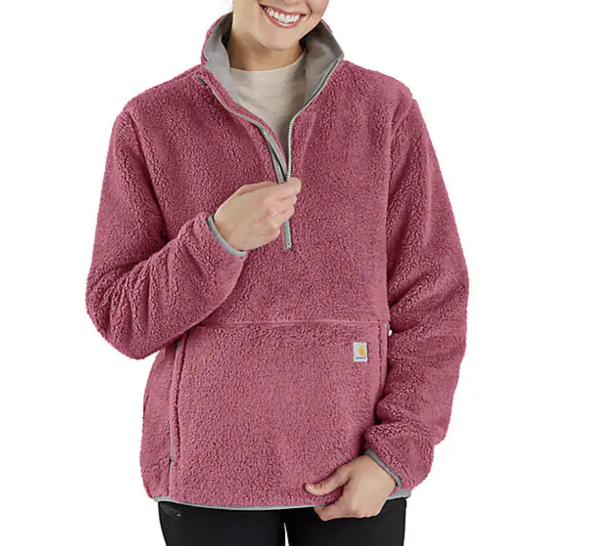 THIS SHERPA JACKET! The Sherpa-lined, vintage looking, cozy but you can still work in it Carhartt Jacket! I wear a large in this jacket - fits true to size but size up if you want to wear over more layers.