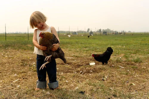 Then the little girls and I clean up from breakfast and get the food scrap bucket together for the chickens. Janie is old enough for preschool but she prefers ranch school, and we are happy to have her home one more year. So is Tiny! We pile into my four-wheeler and make the rounds to all of our Cluck Trucks, which are old non-functioning trucks or trailers we’ve turned into mobile chicken coops. We have 450 chickens we raise for eggs that we sell at our little honor system roadside stand in front of our barn or ship to our customers.